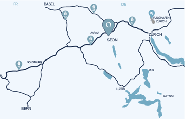 Die Liegenschaft Birren 5 befindet sich im etablierten Industrie- und Gewerbegebiet Birren in Seon, einer wirtschaftsstarken Gemeinde im Kanton Aargau. Der Standort überzeugt durch seine gute regionale Einbettung und die Nähe zu wichtigen Verkehrsachsen. Über Lenzburg ist die Autobahn A1 in wenigen Fahrminuten erreichbar, wodurch eine effiziente Anbindung an die Wirtschaftsräume Zürich, Aarau, Basel und die gesamte Deutschschweiz gewährleistet ist. Auch für Mitarbeitende ist der Standort optimal erschlossen: Der öffentliche Verkehr ist im Ort gut ausgebaut, und Seon verfügt über direkte Bus- und Bahnverbindungen in die umliegenden Zentren. Die regionale Erreichbarkeit ist dadurch sowohl für Pendler als auch für Lieferanten und Kunden sehr gut.